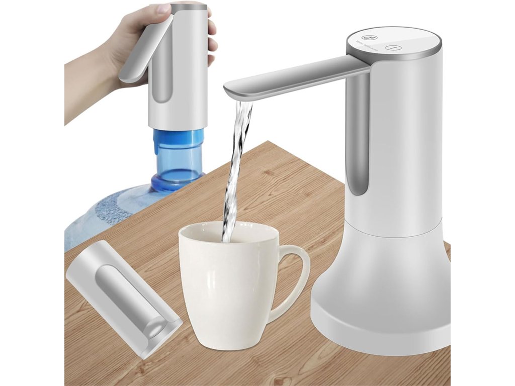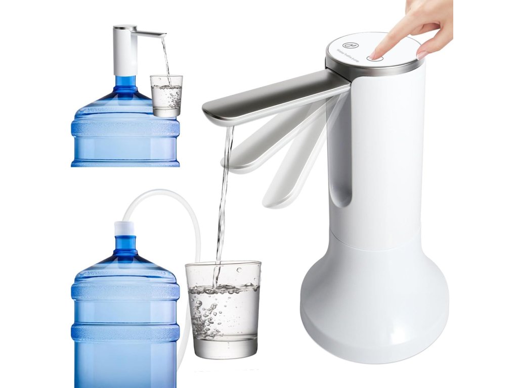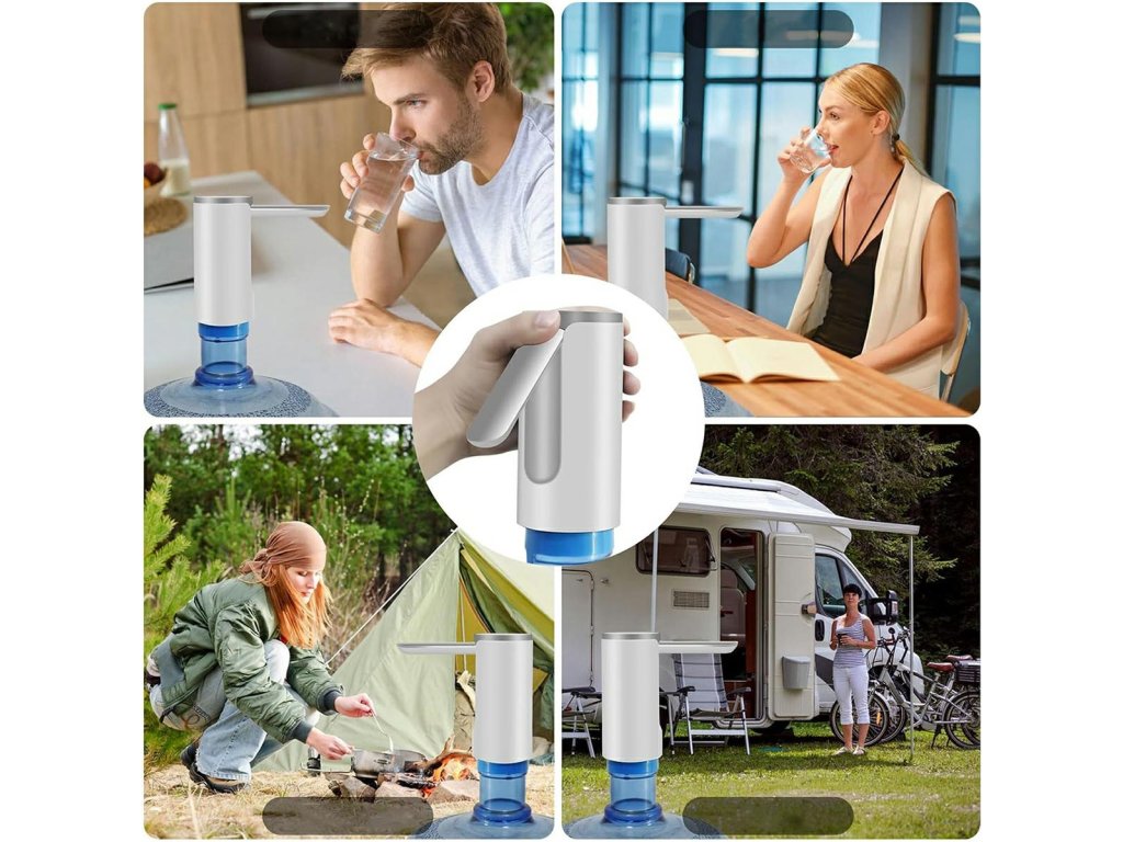 Elektrické vodní čerpadlo. Umožňuje přelévat vodu z velkých, objemných lahví s velkou kapacitou do kompaktnějších lahví nebo nádob. Není potřeba žádné napájení ze sítě (vestavěná baterie se nabíjí přes standardní USB port). Díky kompaktním rozměrům se dávkovač snadno připevní k hrdlu lahve. Ocelová trubice je skládací, což usnadňuje přenášení a nalévání vody do sklenic. Dlouhá sací trubice a vysoce účinné a rychlé čerpání. Zařízení má tři přednastavené provozní režimy, které umožňují dávkovat 200, 400 nebo 800 ml vody jediným kliknutím.