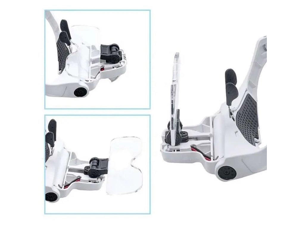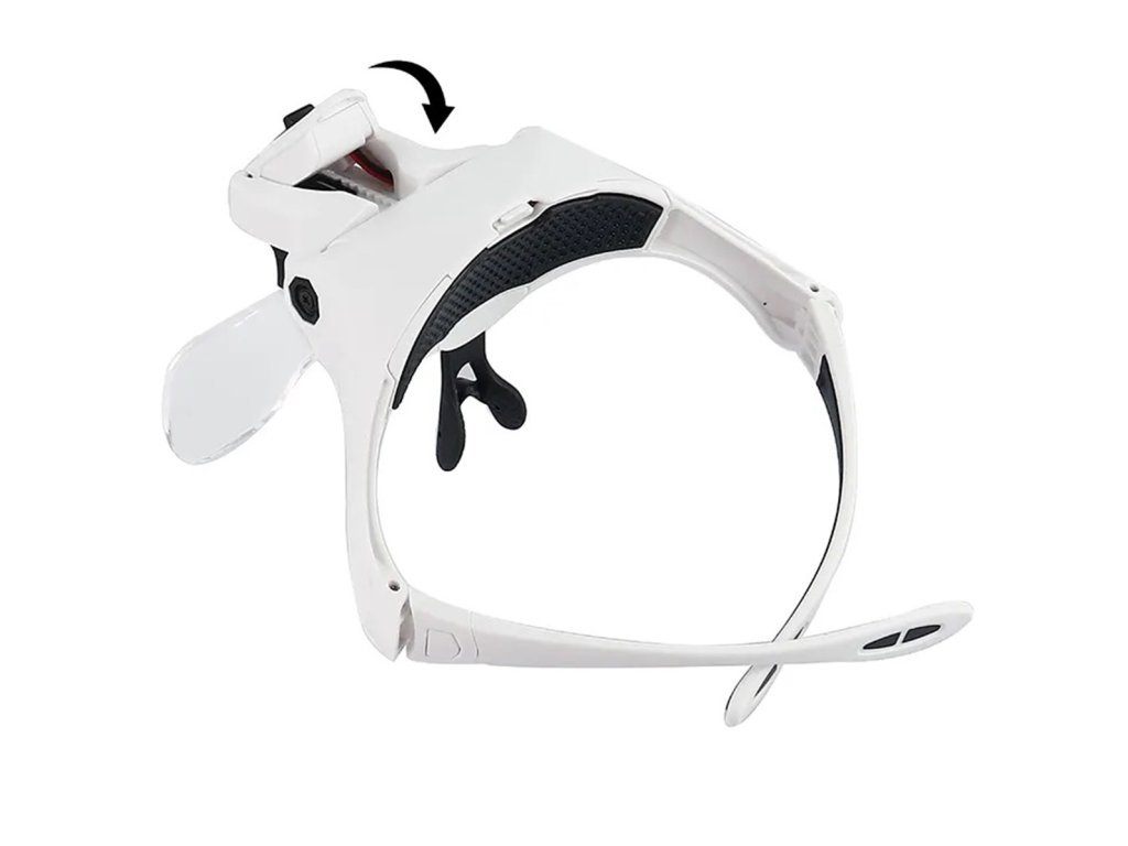 Lupy s LED osvětlením. Pohodlné brýle s vysokým zvětšením a vestavěným LED osvětlením. Zařízení má pět vyměnitelných čoček s různými úrovněmi zvětšení. Další výhodou je možnost nastavení úhlu osvětlení a sklonu samotných čoček i namontovaných čoček. Vynikající nástroj pro hodináře, elektrotechniky, botaniky a všechny precizní práce.