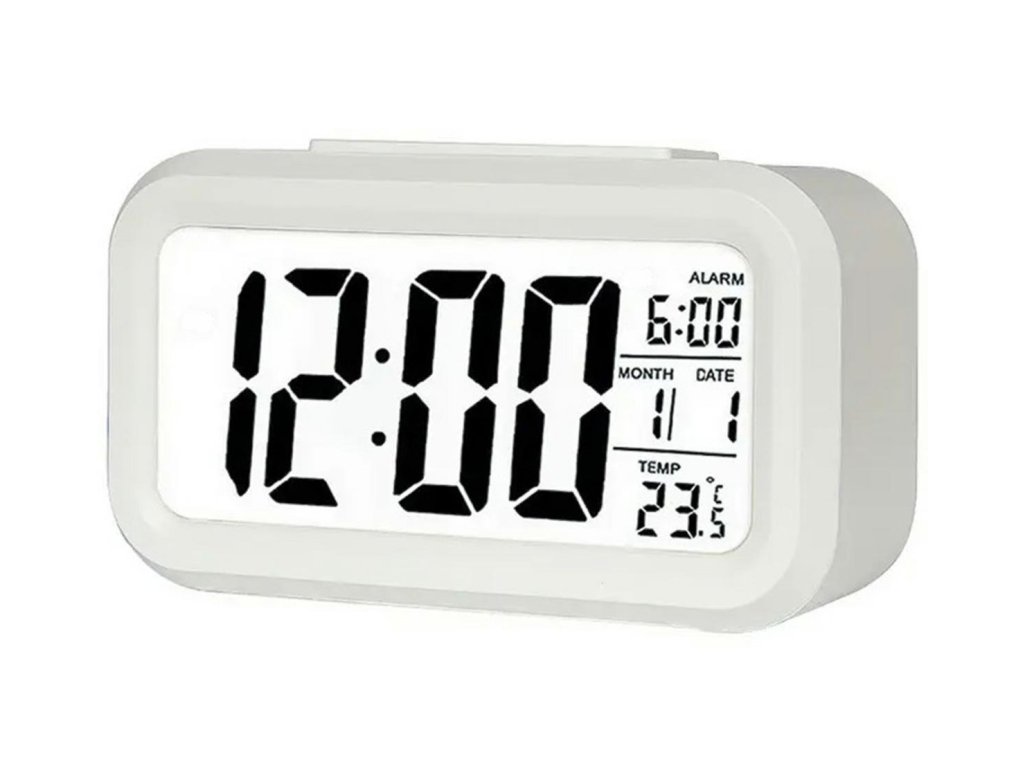 Budík AK240 - malý stolní budík, digitální hodiny, sekundy, teploměr, budík a kalendář