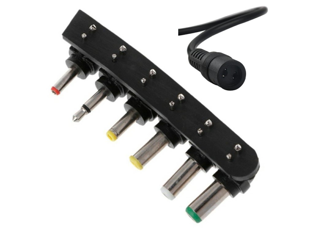 - Typy zástrček (6) pro různá zařízení: 2,5 × 0,73,0 × 1,13,5 × 1,354,0 × 1,75,0 × 2,15,5 x 2,5