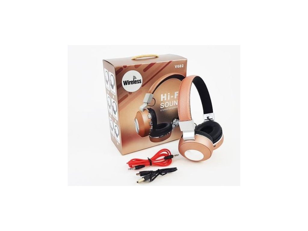 Elegantní bezdrátová bluetooth sluchátka V682 s mikrofonem, barva zlatá, růžová a hnědá