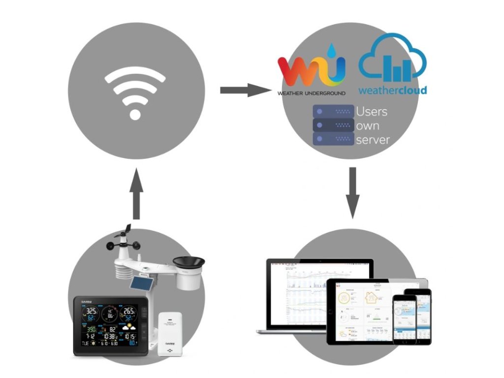 Hlavní jednotka je osazena vysokorychlostními procesory, které analyzují naměřené hodnoty meteorologických veličin a ty pomocí místní Wi-Fi sítě v reálném čase nahrává na zvolený server/servery wunderground.com a weathercloud.net, případně na vlastní server uživatele, nebo na server pocasi-meteo.cz. Zasílání dat je možné na všechny servery současně.