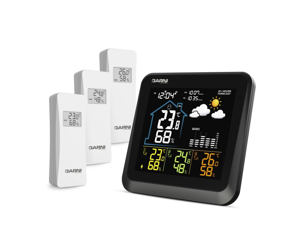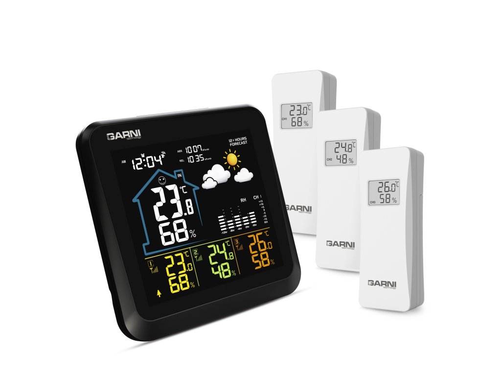 - 3 bezdrátová čidla GARNI 052H jsou součástí balení