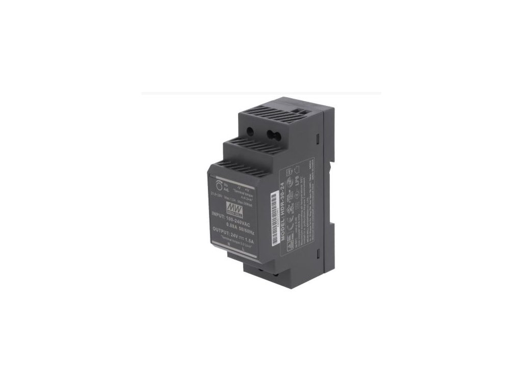 HDR 30-24 - elektronický spínaný síťový zdroj na DIN lištu MEAN WELL 24V/1,5A, 36W