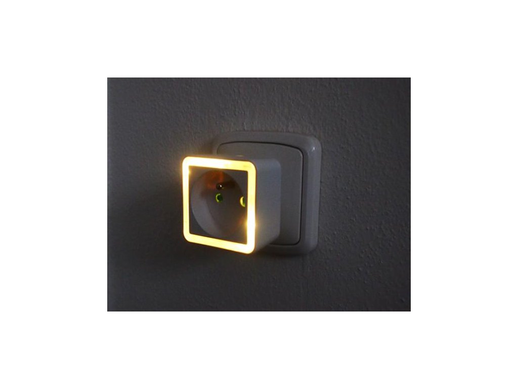 Průchozí zásuvka se světelným rámečkem s LED technologií. Vestavěné soumrakové čidlo zajišťuje rozsvícení rámečku zásuvky po snížení hladiny okolního světla pod hranici 10 Luxů a automaticky zhasne při rozednění na tuto hranici.