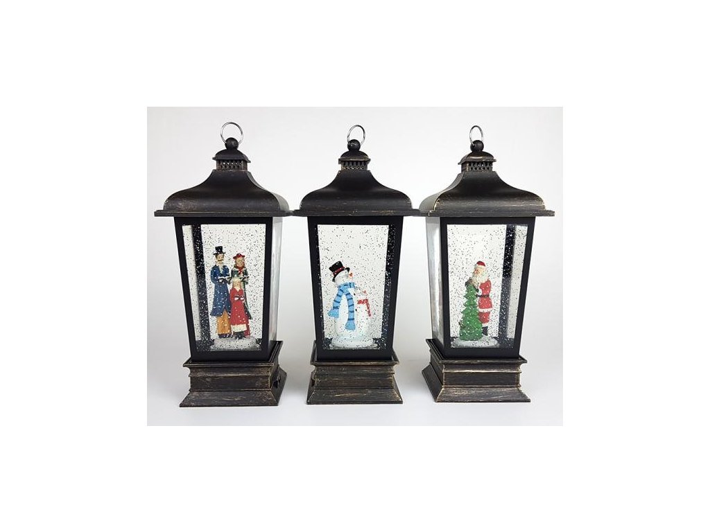 Lampa vánoční ZX1801 - dekorační lucerna 300mm s padajícím sněhem a otáčejícím motivem Santy