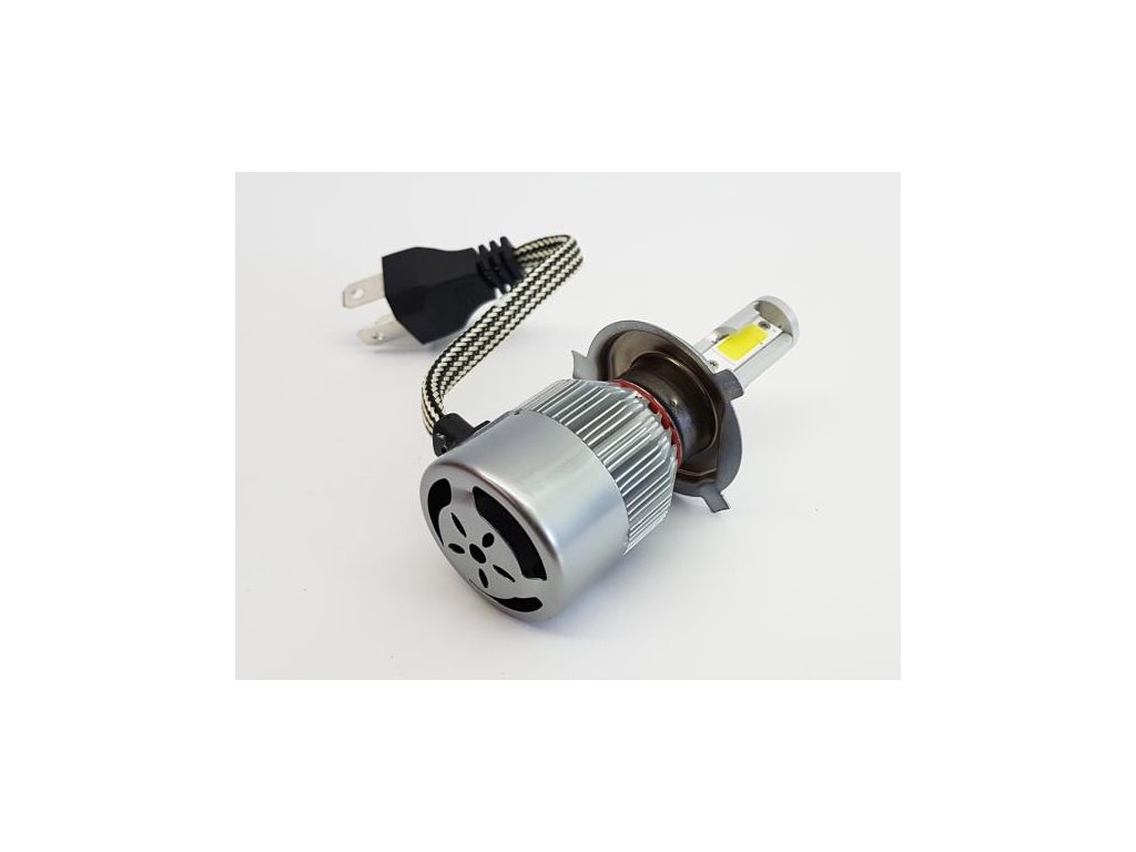 Sada dvou LED žárovek s paticí H4. Příkon je 36W, vysoký světelný tok 3800lm. Žárovka LED má velmi dlouhou životnost 60 000 hodin a nevadí jí otřesy vozu, časté zapínání a vypínání. Na zadní části LED žárovky je pomocný chladič s větrákem pro ochlazování LED čipu a chladiče. Barva svitu autožárovky je bílá studená.