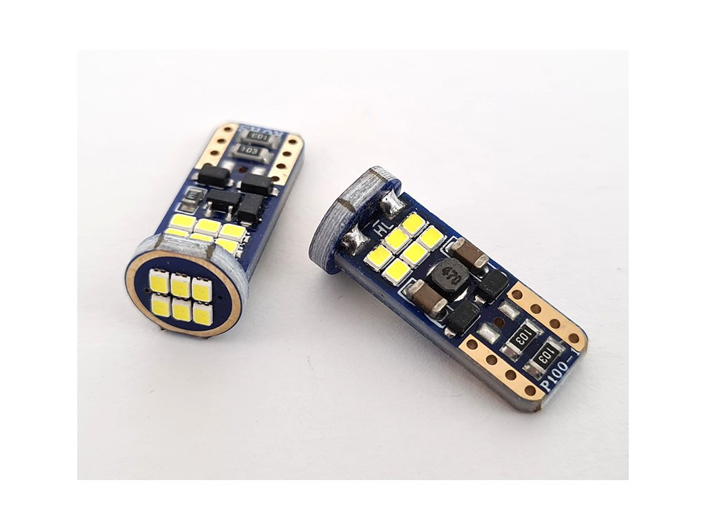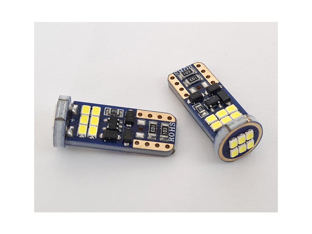 Autožárovka LED 2x T10 W5W 2016-18 Can Bus je vybavena paticí T10 W5W. LED autožárovka s předním svitem je osazena 18x LED čip SMD2016 nové generace s vysokou účinností světla a výkonu. Tato žárovka LED má velmi dlouhou životnost až 50 000hod. a to i při otřesech vozu, častém zapínání a vypínání. To je velmi velká výhoda oproti klasickým žárovkám. Barva svitu autožárovky je bílá a chromatičnost 5500 - 6000K a světelný výkon je 280lm.