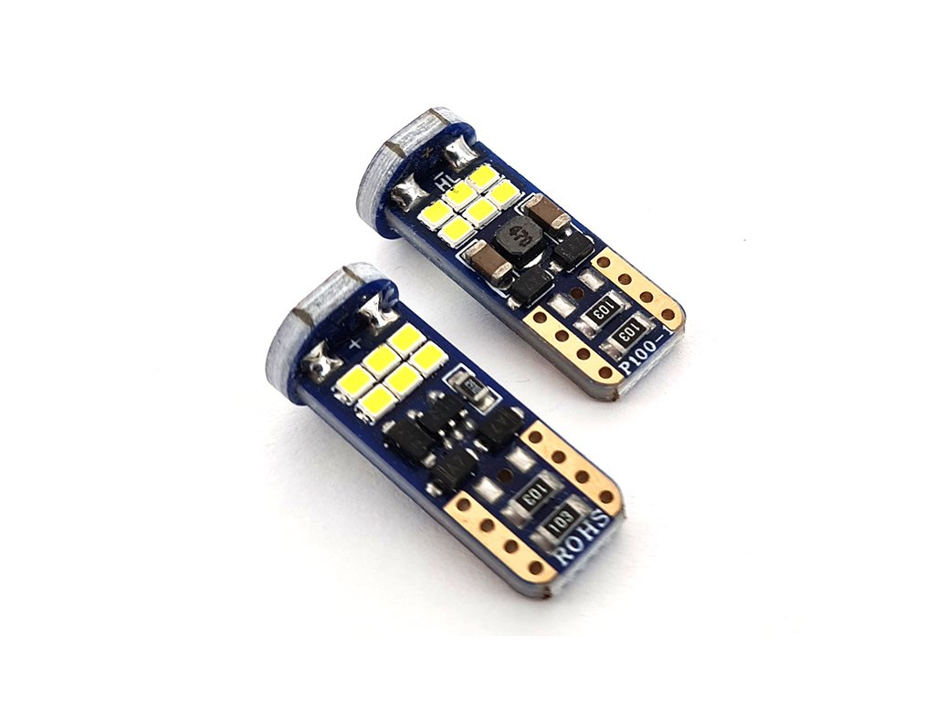 LED 2x T10 W5W 2016-18 Can Bus - 2x 12V LED žárovka 5W do auta s předním svitem, s paticí T10 W5W s CAN BUS