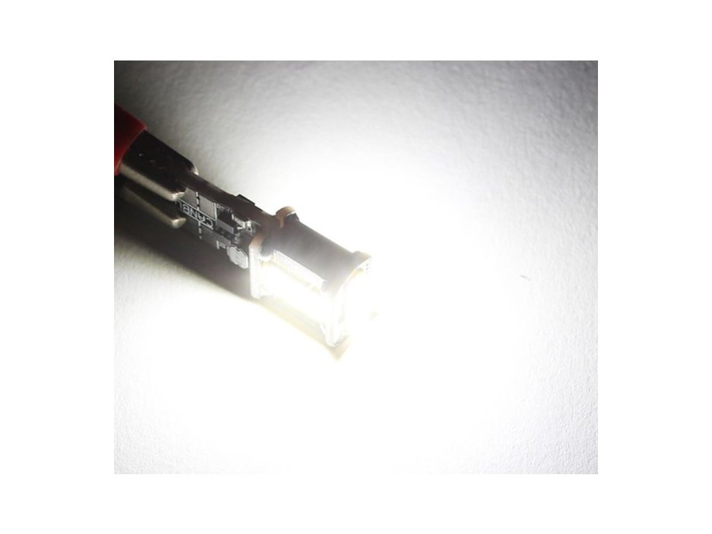 Autožárovka LED W5W T10 3030-9 CAN BUS je vybavena paticí T10 W5W. 3W LED autožárovka s předním i bočním svitem je osazena 9x LED čipy SMD3030 nové generace s vysokou účinností světla a výkonu. Tato žárovka LED má velmi dlouhou životnost až 50 000hod. a to i při otřesech vozu, častém zapínání a vypínání. To je velmi velká výhoda oproti klasickým žárovkám. Barva svitu autožárovky je bílá a chromatičnost 5500 - 6500K a světelný výkon je 400lm.