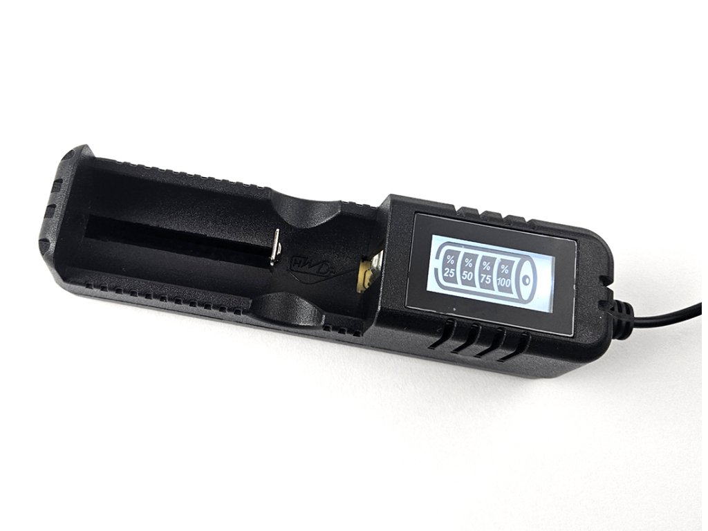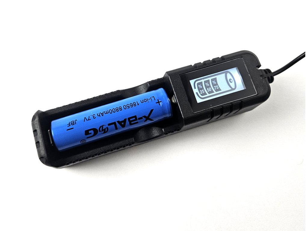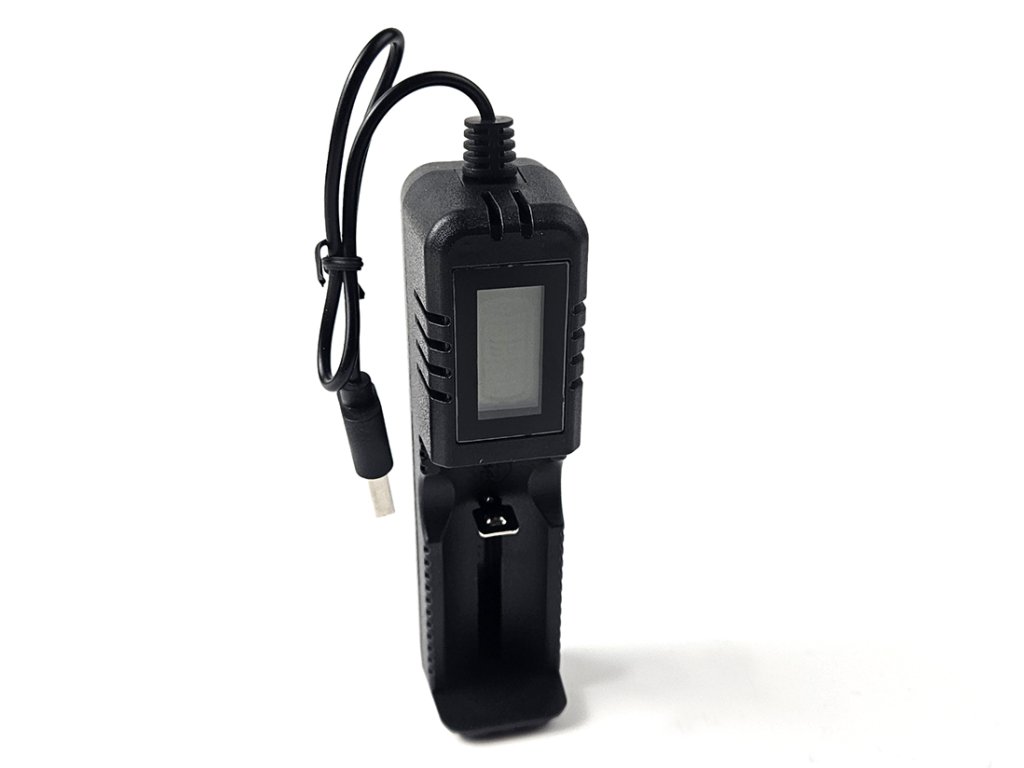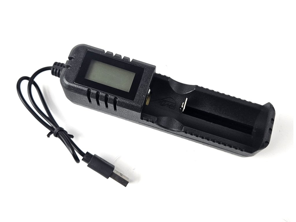 Univerzální digitální USB nabíječka jednoho Li-Ion dobíjecího akumulátoru typu 18650, 26650 a 16340.