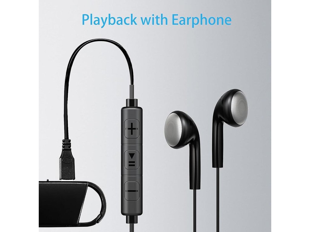 - Díky sluchátkům, které jsou součástí můžete nahrávky ihned poslouchat nebo si do zařízení nahrát i hudbu