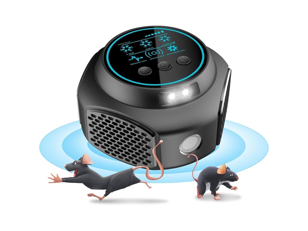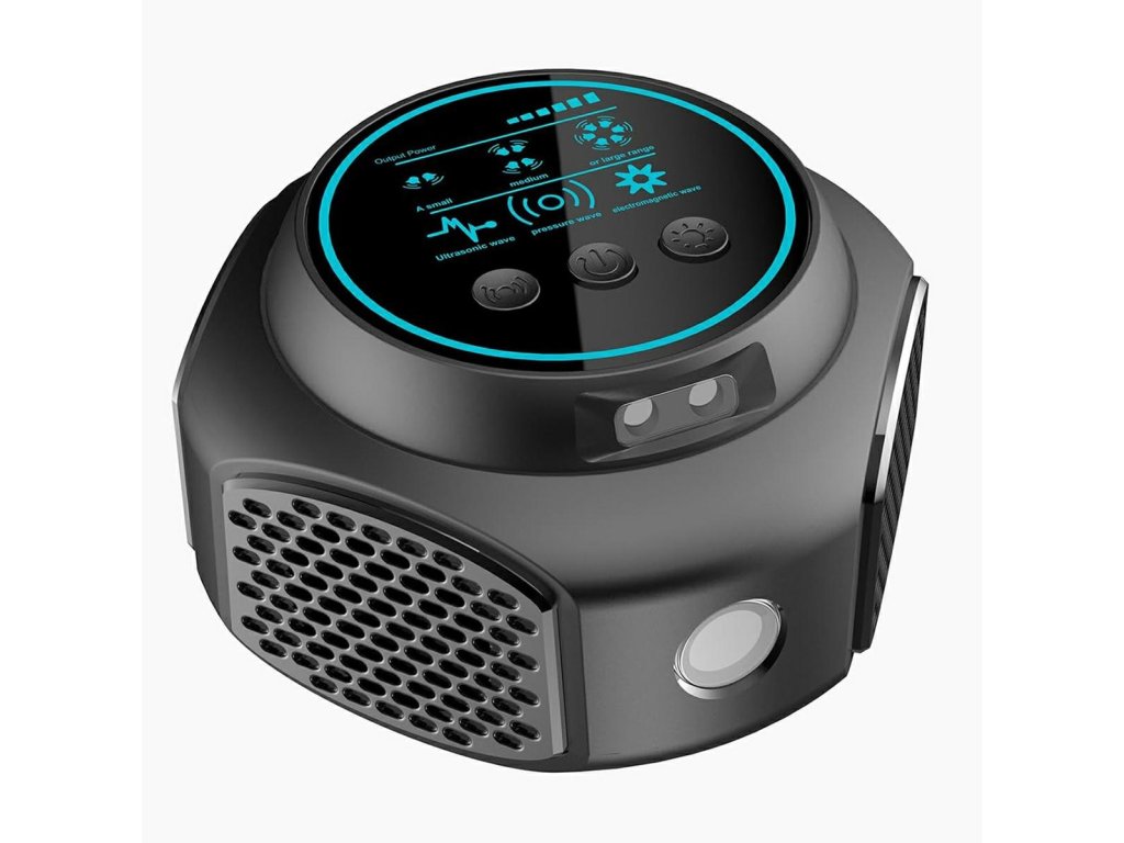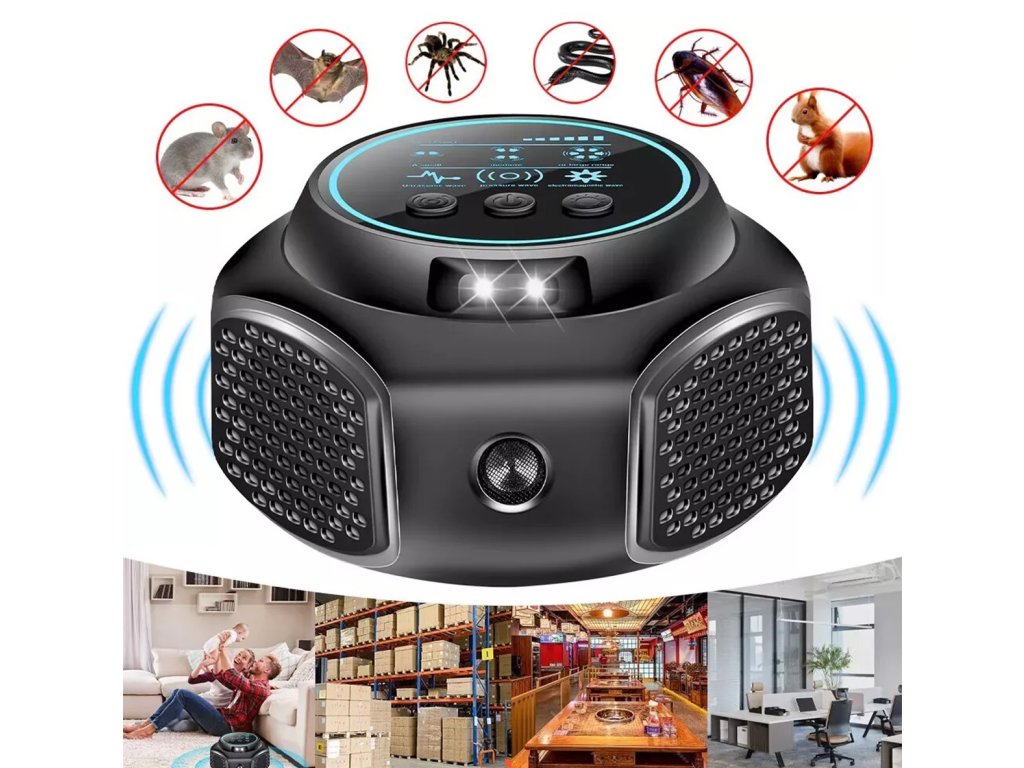 - Zařízení vydává zvuky, které dráždí hmyz a hlodavce, aby se mouchy, komáři a myši nepřibližovaly k jeho provozní oblasti.