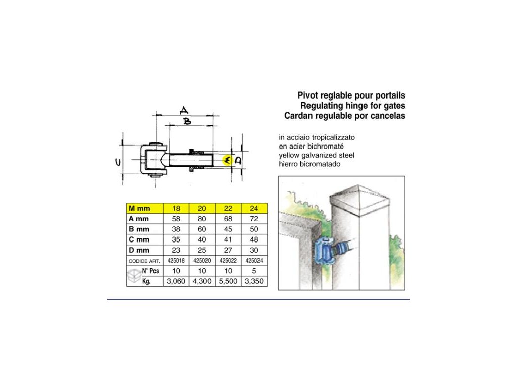 Pant vhodný pro montáž na kovové sloupky a pro přišroubování nebo navaření na rám křídla brány. Možnost regulace pantu závitem pro přesné nastavení vzdálenosti brány od sloupku.