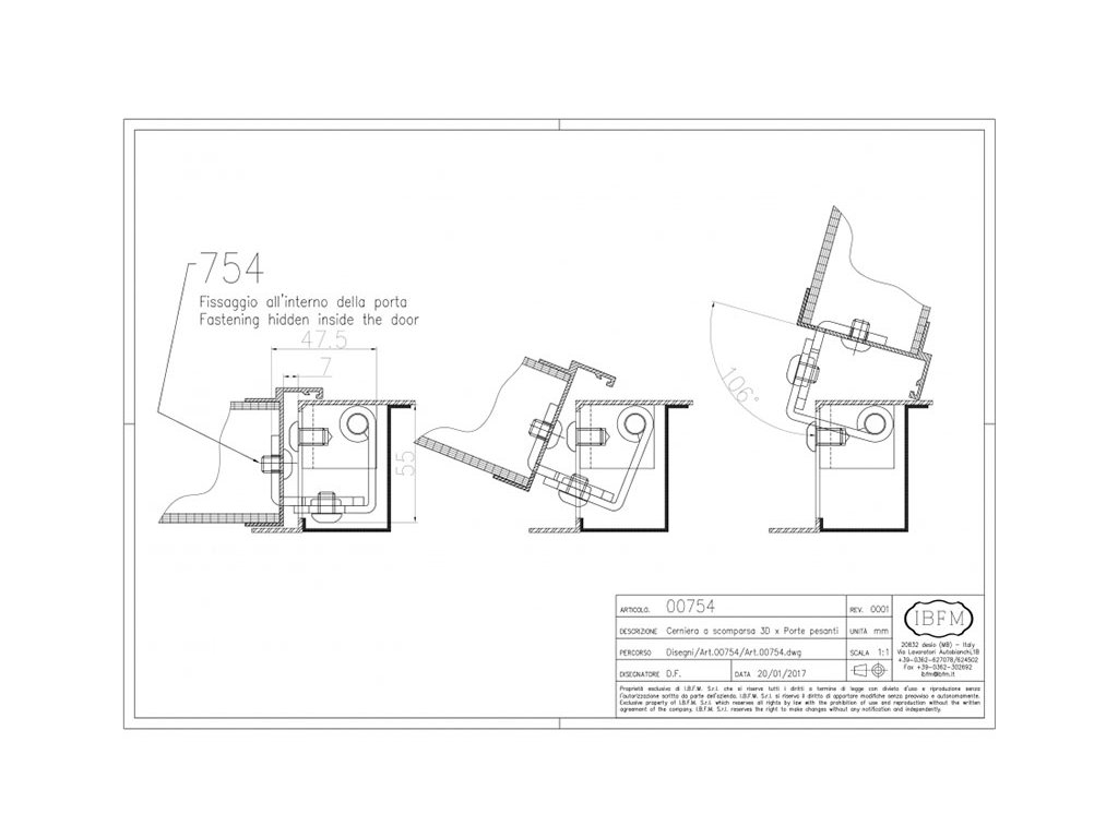 Jedinečný pant až pro 160kg zátěž, který je vhodný pro kovové profily ( sloupky, zárubně). V zavřené poloze dveří je tento pant neviditelný a je schovaný v profilu viz foto. Tento typ je s upevňovací deskou. Tento speciální pant se používá pro dveře, kde nechceme např. z estetických nebo technických důvodů aby byl pant vidět při zavřené poloze dveří.