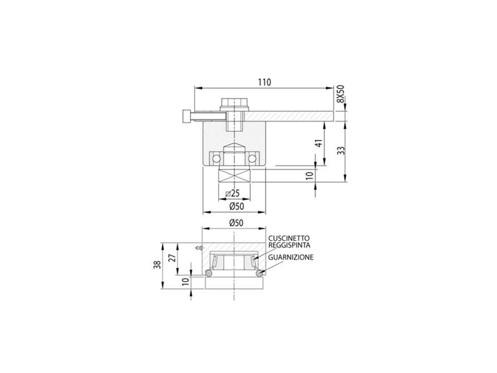 - Velikost horního pantu průměr 50mm x 26mm, spodního pantu průměr 50mm x 36mm, délka horní nastavitelné desky 120mm