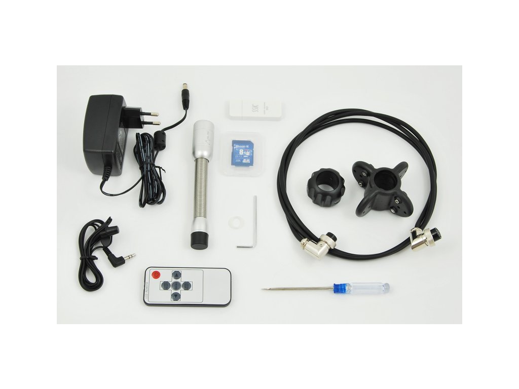 O perfektní záznam obrazu se stará kamera s kvalitní safírovou čočkou o rozlišení 720 x 576. Tělo kamery je vyrobeno z hliníkové slitiny, hlavice je pak vybavena 12 bílými LED, jejichž intenzitu svitu lze jednoduše a plynule regulovat. Skvělou viditelnost v jakémkoliv prostoru dále podporuje široký úhel záběru 105°. V balení jsou k dispozici dva vystřeďováky (40 a 80 mm) a další 4 velikosti až do průměru 190 mm je možné dokoupit.