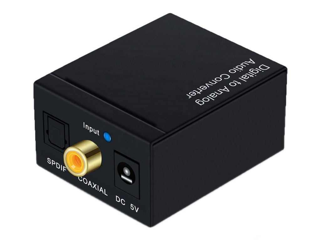- Převodník určený pro převod digitálního audio signálu z koaxiálního/Toslink vstupu na analogový stereo zvuk (2x RCA a 3,5mm mini Jack).