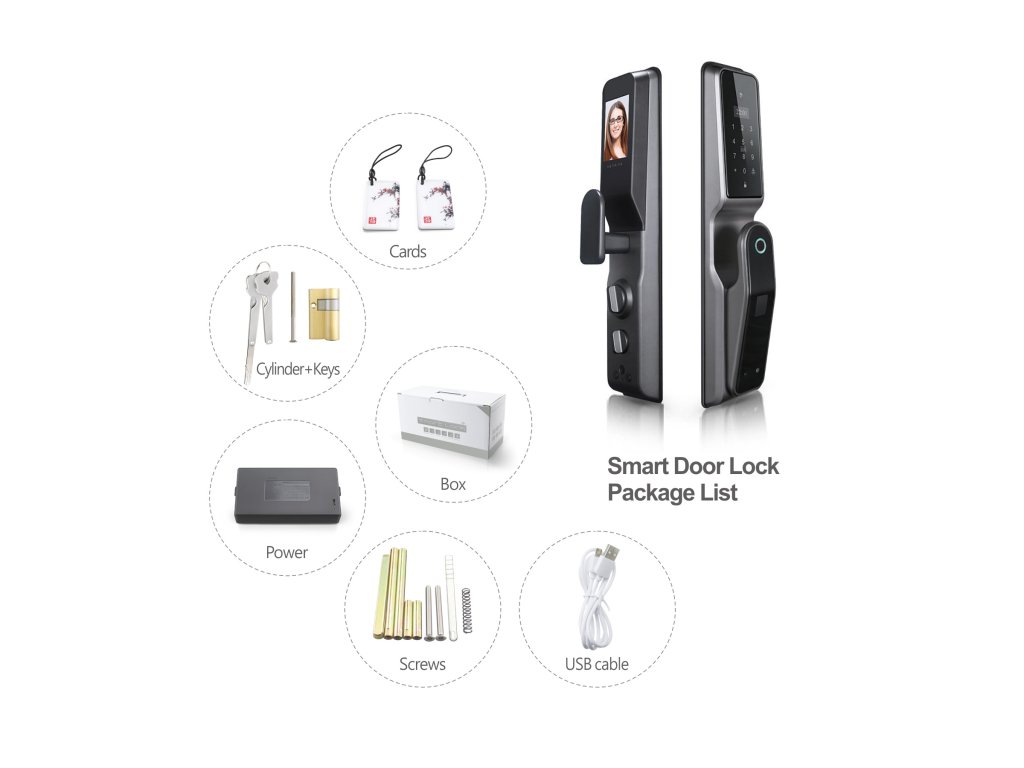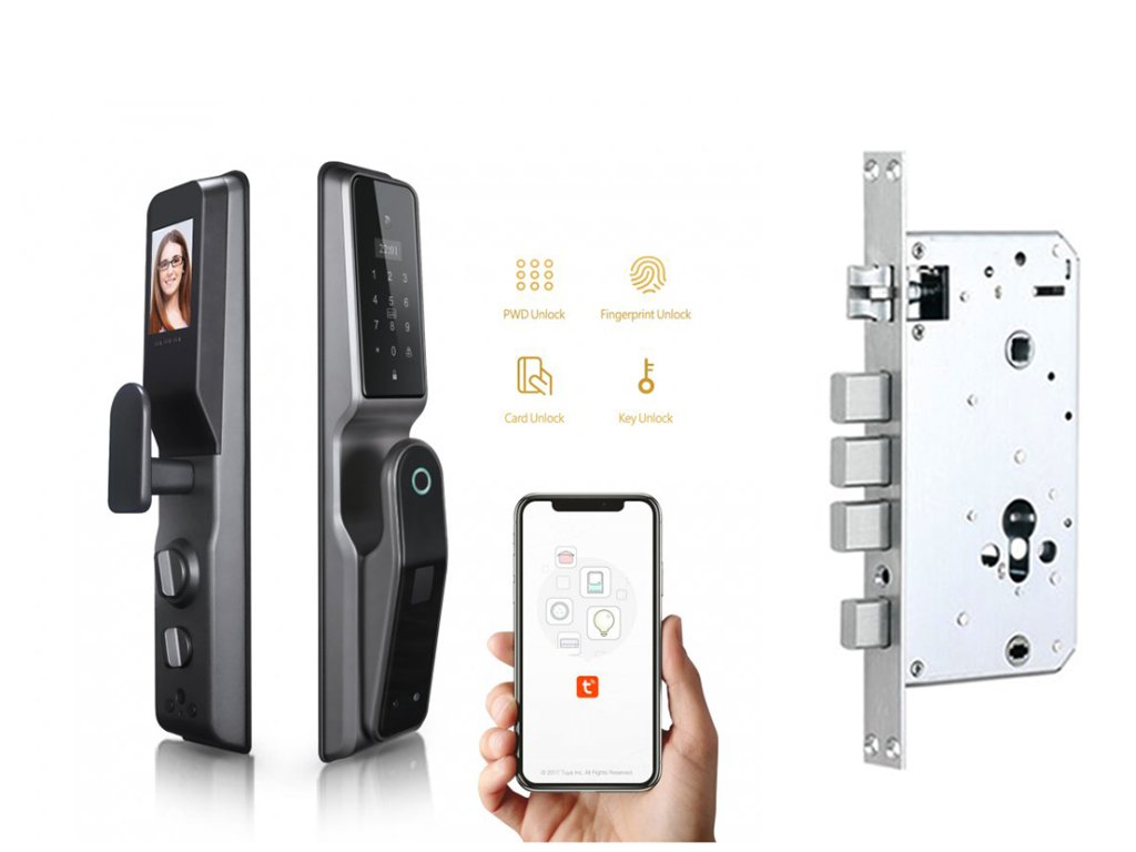 PST AF60P+F1 předváděcí model - výhodná sada - inteligentní chytrá WiFi klika, elektronický dveřní zámek, IP kamera, čtečka otisků prstů, čtečka RFID karet, kódová klávesnice, vhodné pro aplikaci TuyaSmart