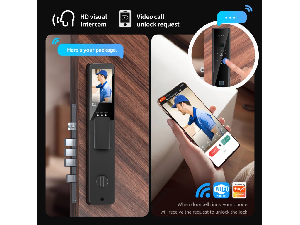 📱 Zvonek s videopřenosem – buďte doma, i když jste pryč Jakmile někdo zazvoní, okamžitě vidíte návštěvníka na displeji svého telefonu díky zabudované HD kameře. Ať jste v práci, na dovolené nebo u souseda – nikdy vám nic neunikne. Komunikujte dvousměrně a odemykejte na dálku jediným klepnutím v aplikaci.