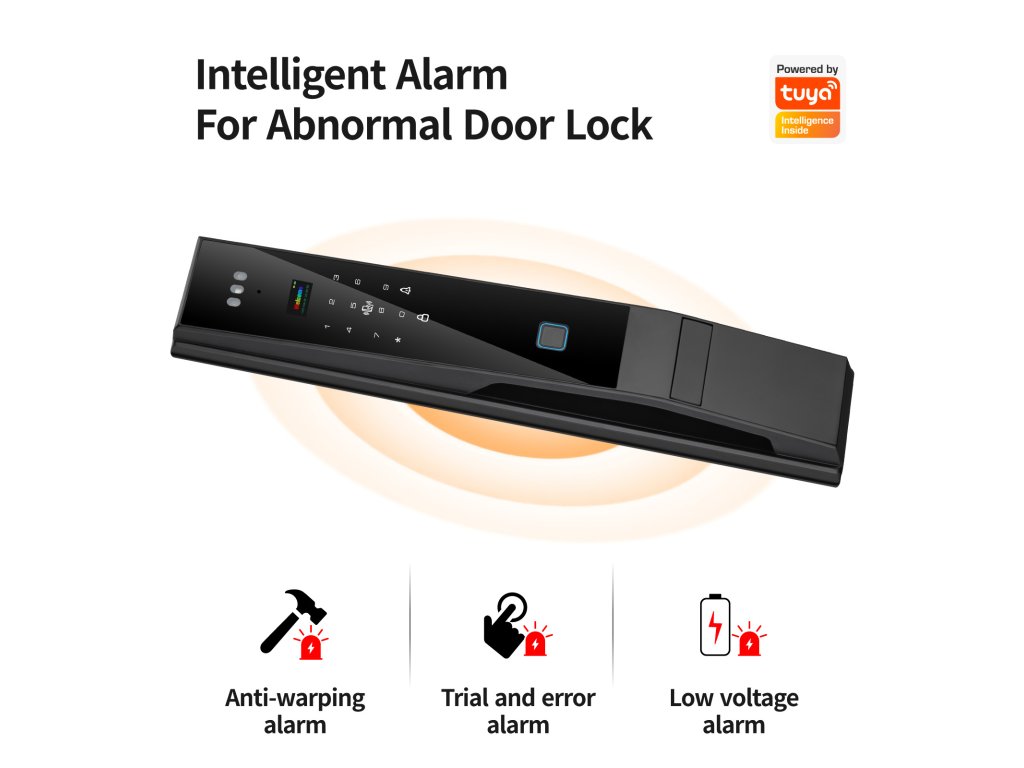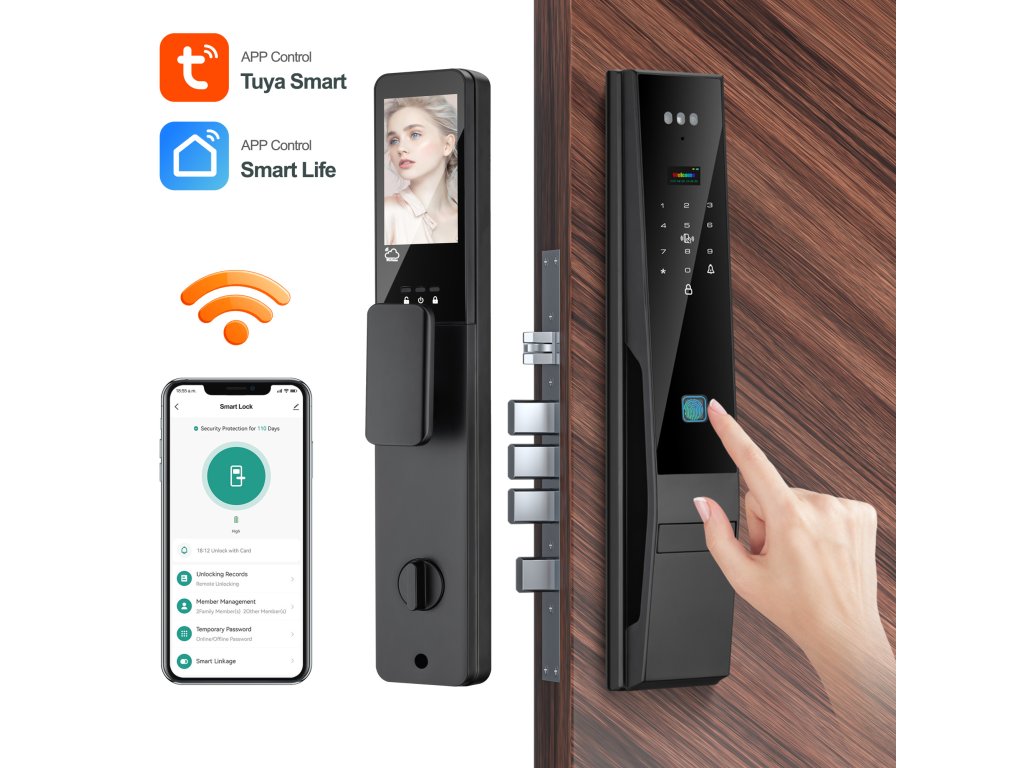 PST DDL4-TY – Chytrý zámek na dveře s rozpoznáním obličeje, otiskem prstu, WiFi aplikací Tuya a videovrátným | 6 způsobů odemykání
