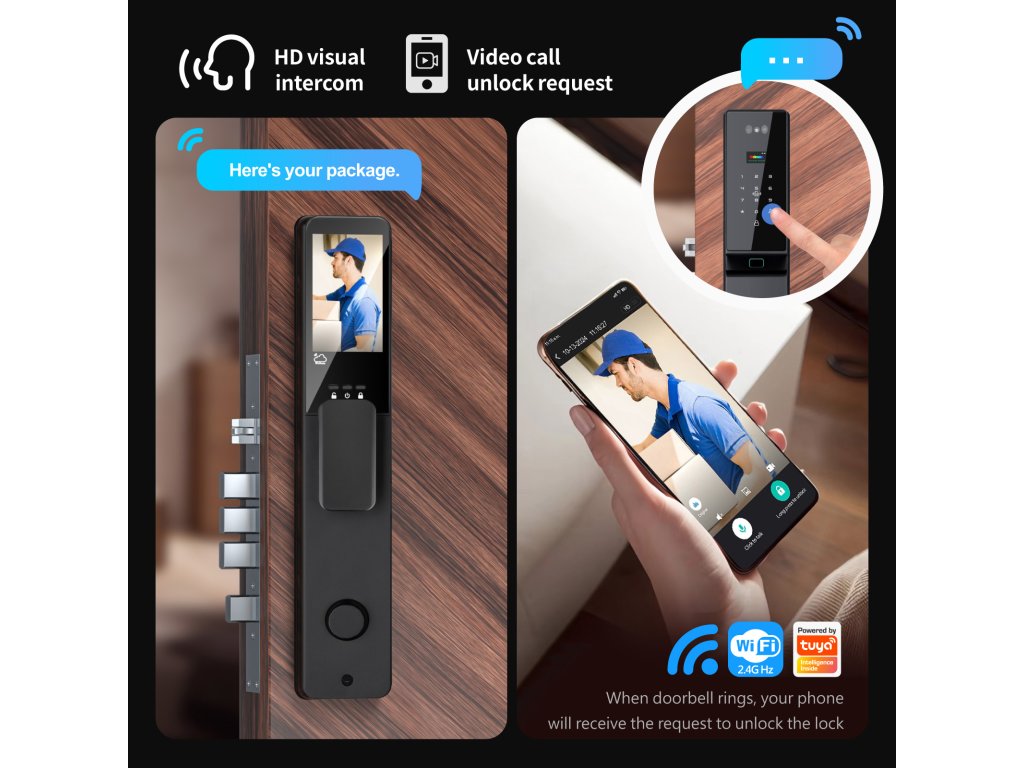 📱 Zvonek s videopřenosem – buďte doma, i když jste pryč Jakmile někdo zazvoní, okamžitě vidíte návštěvníka na displeji svého telefonu díky zabudované HD kameře. Ať jste v práci, na dovolené nebo u souseda – nikdy vám nic neunikne. Komunikujte dvousměrně a odemykejte na dálku jediným klepnutím v aplikaci.