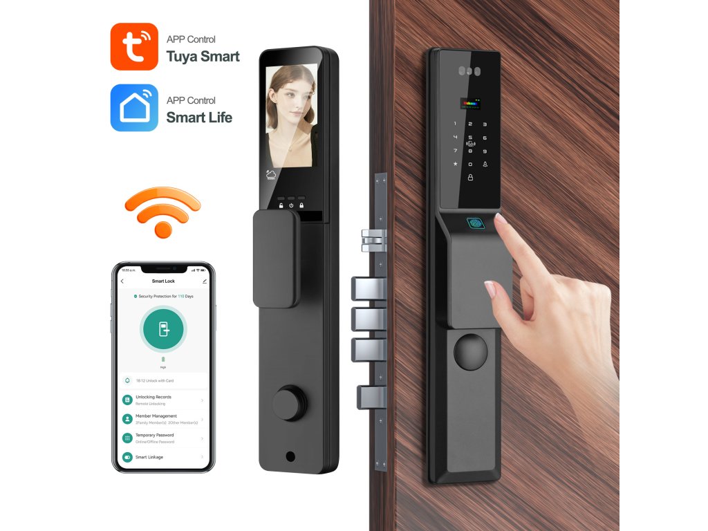 PST DDL5-TY OUTDOOR - Venkovní WiFi chytrá klika s kamerou, WiFi elektronický zámek, čtečka otisků, 3D face