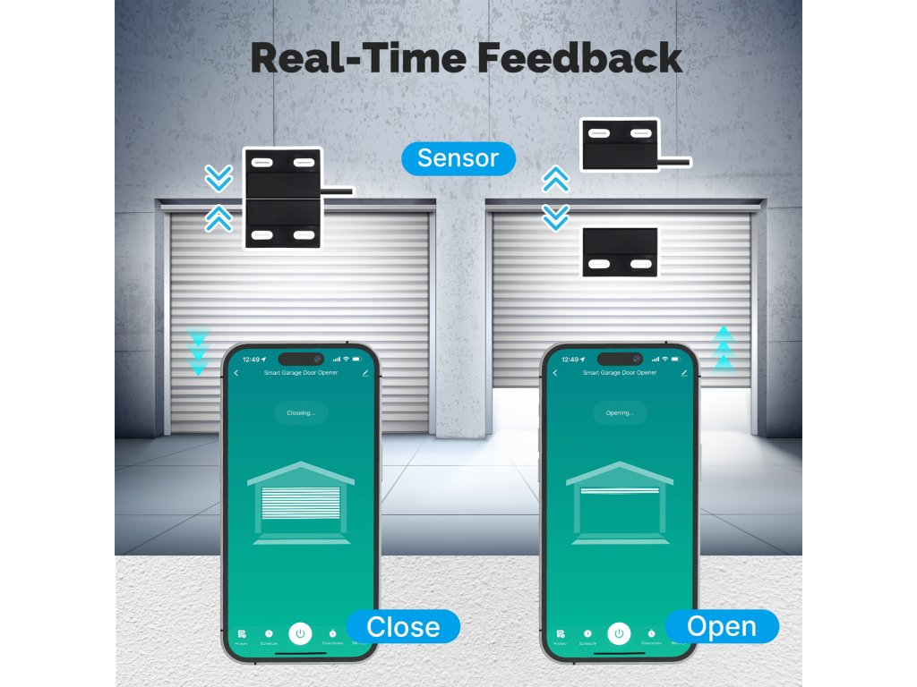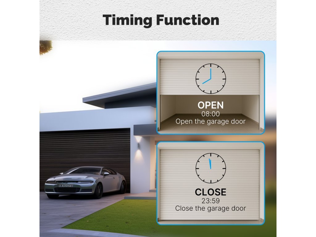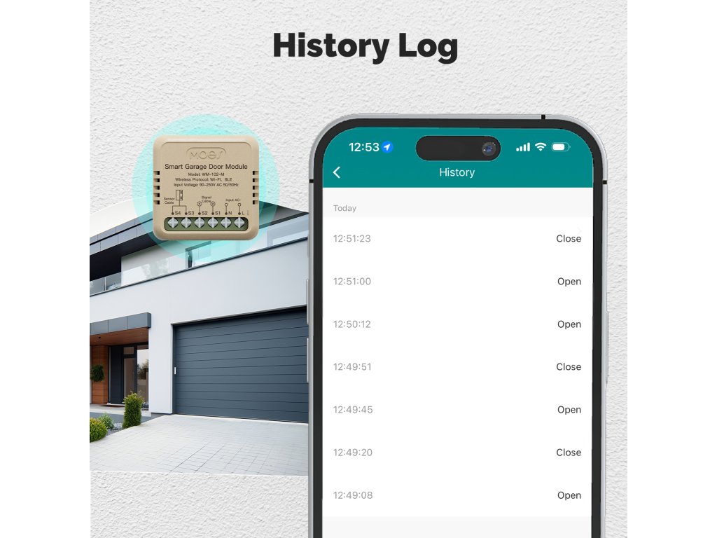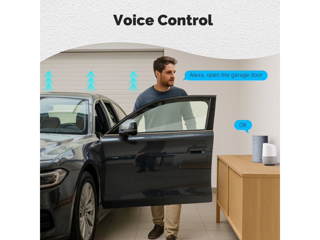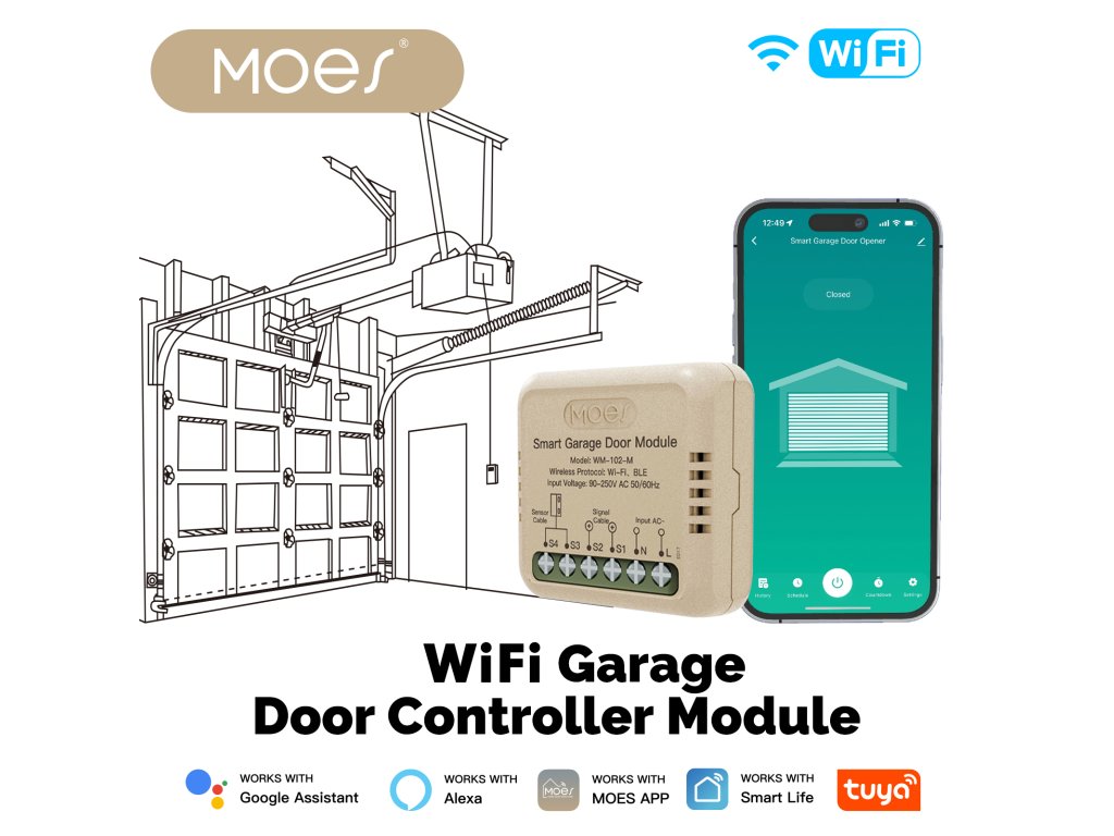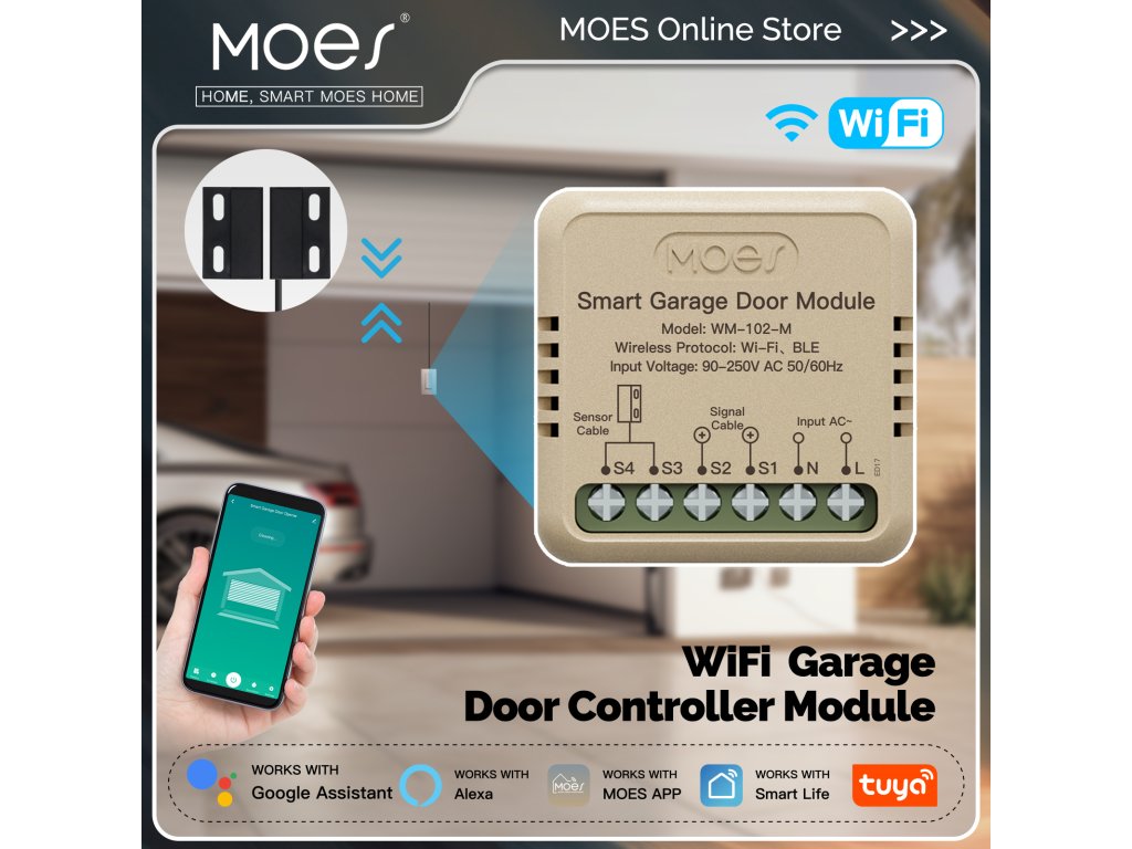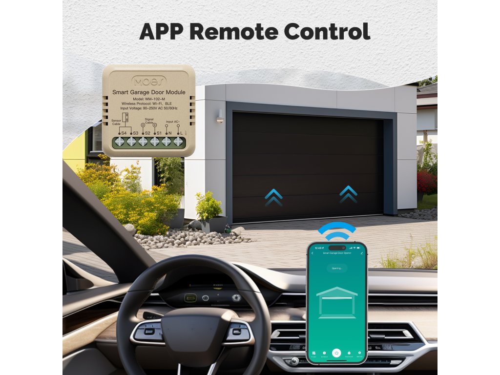 PST WM102M Tuya je bezdrátový otevírač a zavírač garážových vrat a vjezdových bran s kontrolou stavu. Pomocí chytré aplikace TUYA SMART nebo SMART LIVE-SMART LIVING zjistíte, zda-li jsou vrata otevřena nebo zavřena a případně obdržíte upozornění na násilné otevření vrat. Díky chytré aplikaci lze nastavit různé scény otevírání, jako je např. otevření vrat při Vašem příjezdu bez nutnosti vytahování telefonu z kapsy. Samozřejmostí je také časovač pro otevření/zavření vrat nebo funkce odpočítávání.