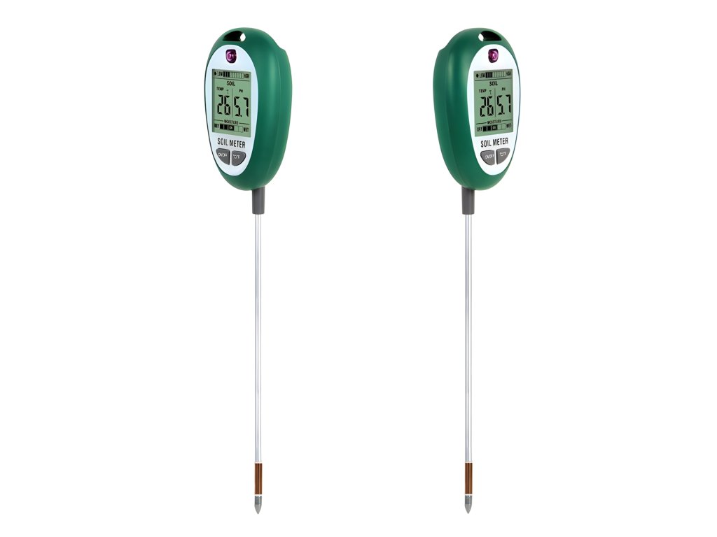 Tento multifunkční půdní tester 4 v 1 vám umožňuje rychle měřit základní parametry půdy pro domácí i zahradní plodiny. Přístroj měří vlhkost, pH, teplotu a sluneční záření a výsledky zobrazuje na podsvíceném LCD displeji. Kovové sondy usnadňují měření přímo v zemi.