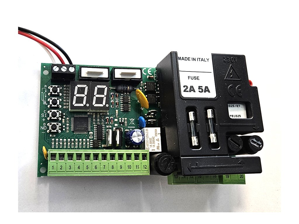 Plastové zakrytování napájecí části řídící jednotky Q 80A s držáky dvou pojistek