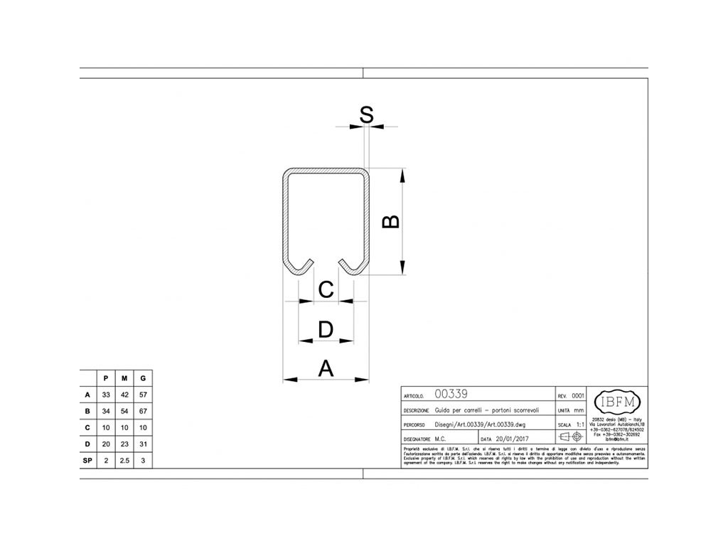 - Rozměry kolejnice 339P - 31 x 34 x 6000mm, povrchová úprava - galvanický zinek, vozíky - 4 kolečka s ložiskem, průměr koleček 24mm, šroub 8 x 35mm, celková délka vozíku 60mm, zatížení jednoho vozíku - 43Kg, držák boční 339P - rozměry L uchycení 50x60x60mm, rozměry držáku 41x48x60mm. Zatížení kolejnice je max. 90kg.