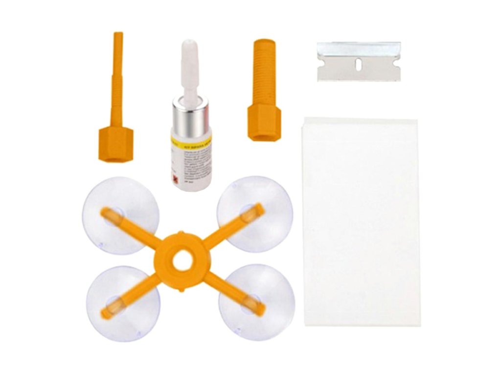 - Díky této sadě si můžete sami opravit čelní sklo na autě. Snadno a rychle se zbavíte třísek způsobených nejčastěji nárazy kamenů zpod kol jiných automobilů.