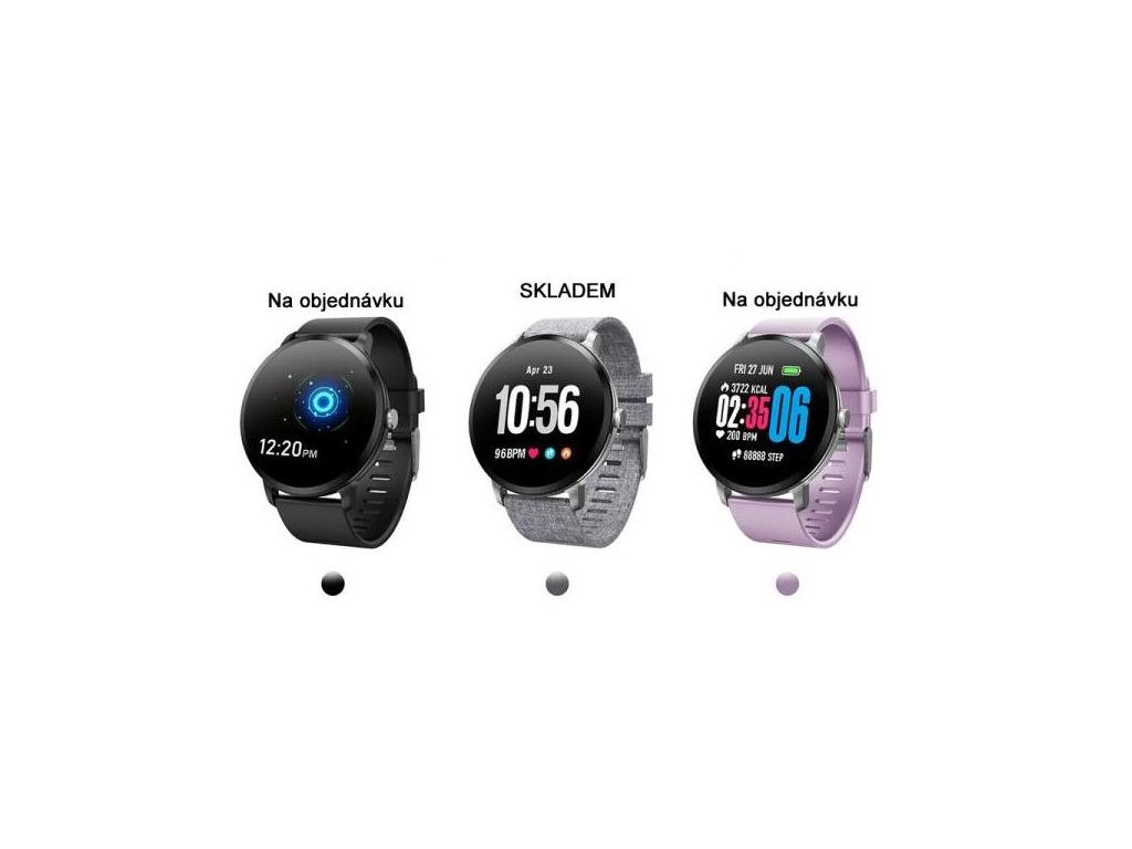 - Zobrazení času, budíku, notifikací, spálených kalorií, tepu, pulsní oxymetr...