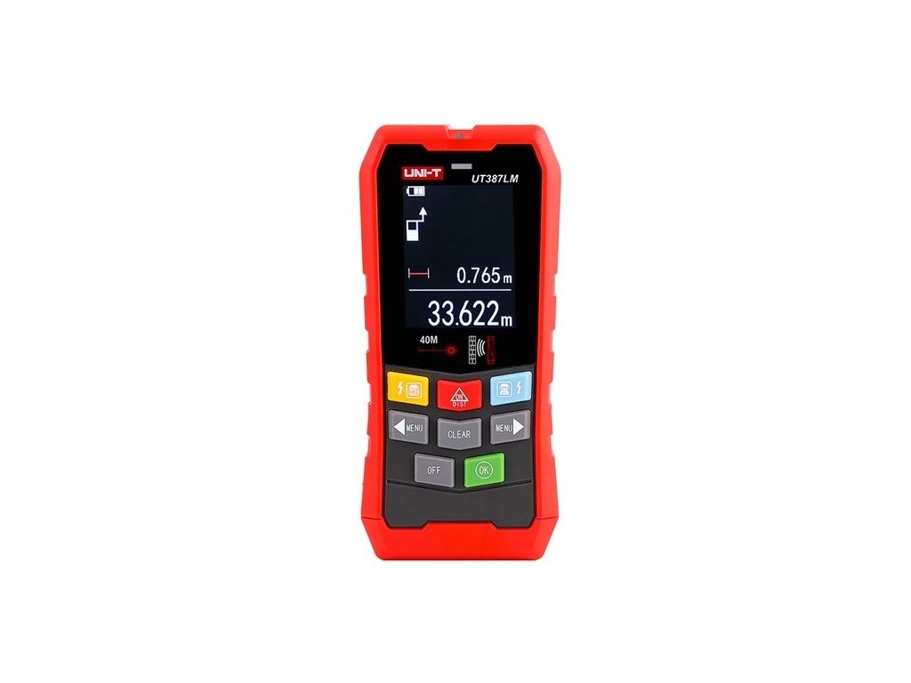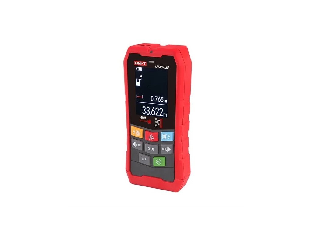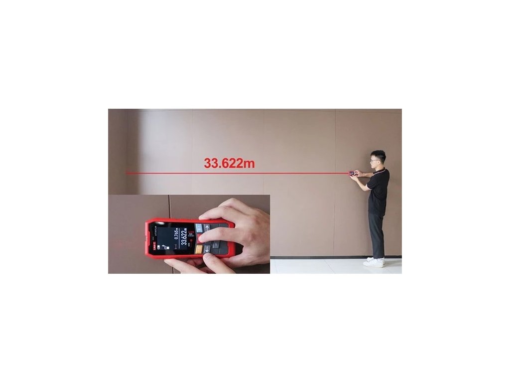Laserový dálkoměr umožňuje měřit vzdálenost do cca 20m a s přídavnou odraznou plochou (reflektorem) až do 40m s automatizovaným výpočtem pravoúhlých ploch a pravoúhlých objemů. Umí taky vypočítat výšku objektů podle Phytagorovy věty změřením jedné odvěsny a přepony. Umožňuje také tyto režimy: jedno měření, sčítání a odečítání naměřených hodnot, kontinuální měření vzdáleností, plochy, objemy, výšky v pravoúhlém trojúhelníku, převod jednotek měření. Umožňuje uložit do paměti 30 skupin dat a historické data vyvolat z paměti. Hlasová oznámení, bzučák, tichý režim.