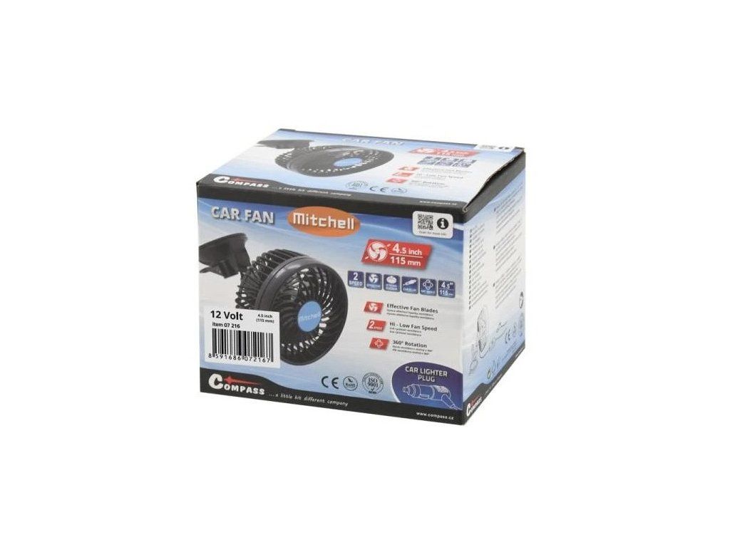 Ventilátor MITCHELL 115MM - 12V nebo 24V ventilátor 115mm na přísavku, napájení z 12V autozásuvky