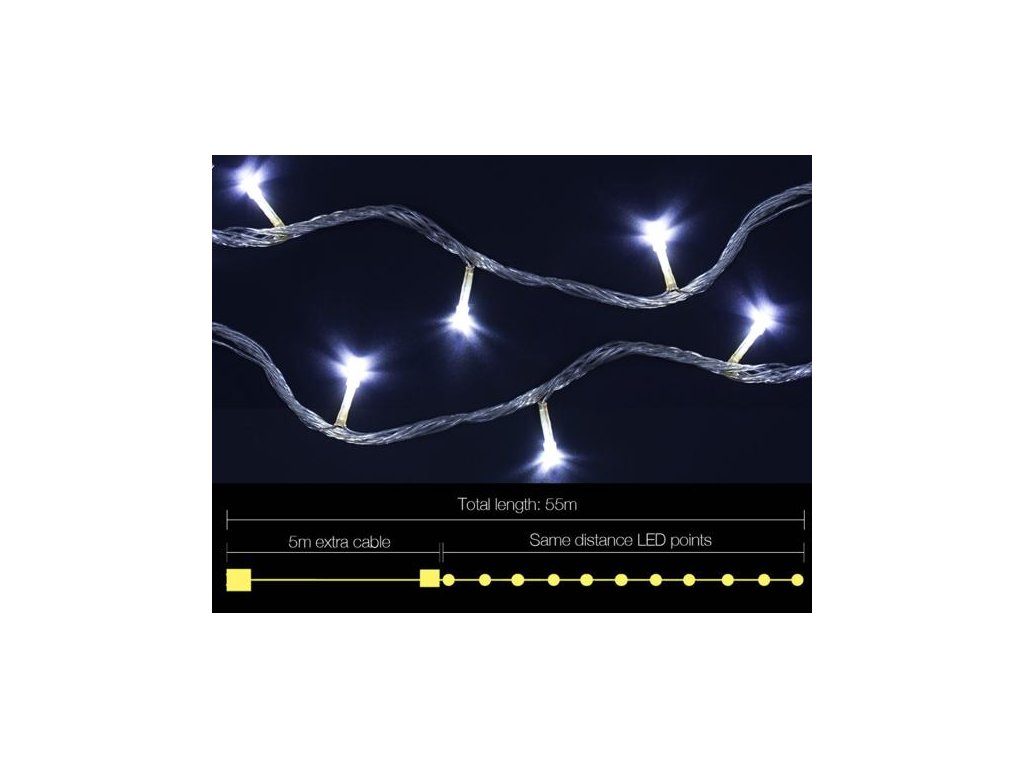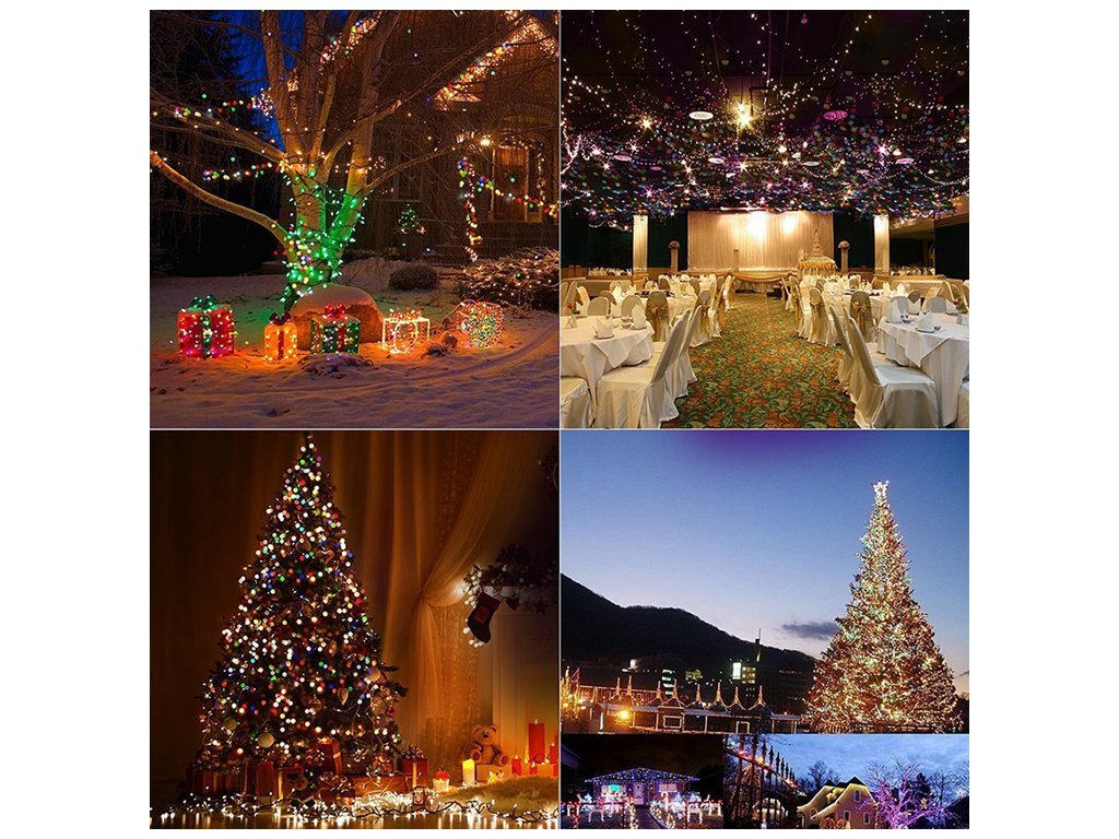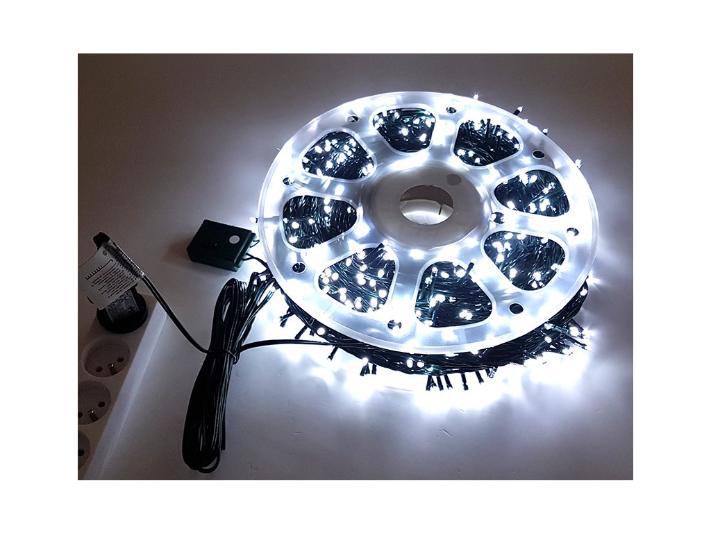 Dekorační led osvětlení 100 m se svitem studené bílé, bílé teplé barvy, 1000x LED z toho 100 zábleskových diod. 100m světelný řetěz je vhodný pro vnitřní i venkovní použití - jak na zahradu, dům, na plot, na strom, terasu, okno či chodbu. Osvětlení není výhradně určeno pro dobu Vánoc, ale můžete ho využít i pro dekorativní účely při zvláštních příležitostech (svatby, narozeniny, party). LED diody jsou oblíbenou náhradou za klasické žárovky. Oproti klasickým žárovkám LED diody nevyzařují teplo, jsou odolné proti otřesům a můžete díky nim ušetřit téměř až 90% energie, které byste jinak spotřebovali u klasických žárovek. Průměrná životnost LED diody je 20.000 hodin svícení (normální žárovka cca 1000-2000 hodin v závislosti na svítivosti). Světelné funkce lze nastavit přímo na adaptéru. Každý řetěz obsahuje spínač přímo na adaptéru, pomocí kterého měníte mezi osmi způsoby svícení (blikání, pozvolné rozsvícení a další).