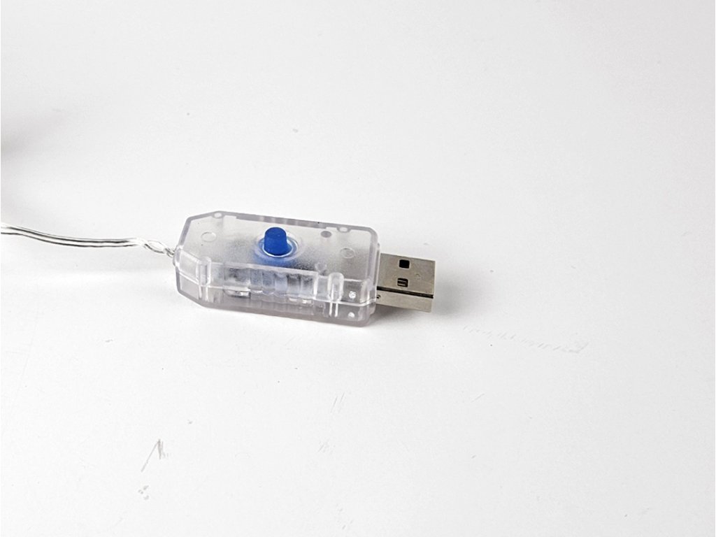 6m dlouhý světelný řetěz Girlanda je určený pro vnitřní použití, pro dekorační účely (skleněné nádoby, vánoční stromek, věnec apod.). Řetěz je dodáván s napájecím USB konektorem, tlačítkem pro nastavení 8 programů svitu.