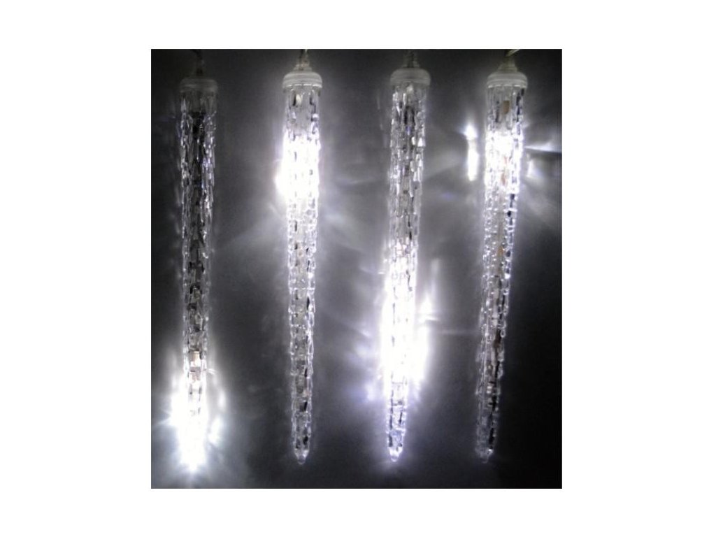 Sada 8 kusů krápníků dlouhých 23cm se svitem bílé studené a bílé teplé barvy. Jedna z velkých výhod, kterou tyto led rampouchy nabízejí je jejich schopnost zcela přirozeně splynout s okolím nebo místem, kde jsou umístěné. V kombinaci se sněhem potom tyto bílé vánoční LED rampouchy tvoří skutečně krásnou a efektivní světelnou dekoraci. Ideální místa pro umístění těchto bílých LED rampouchů jsou horské chaty, apartmány a penziony. Pokud tyto bílé rampouchy svítí na podobných místech v noci, tak jsou krásně vidět již z dálky a slouží také jako určitý orientační bod. Nicméně tyto bílé LED rampouchy působí harmonicky i jinde. Díky LED technologii můžete svítit celý den i noc. Navíc se nemusíte bát vysokého účtu za elektrickou energii. Led technologie je v tomto ohledu velmi pokroková a v dnešní době se prakticky jedná o nejúspornější řešení. Toto osvětlení je možné navzájem propojovat díky speciálním konektorům, propojit můžete až 5 sad tohoto osvětlení. Dlouhá životnost, vysoká odolnost, univerzální použití a minimální spotřeba proudu. Lze navzájem propojovat díky speciálním konektorům až 5 sad na jeden zdroj (trafo).