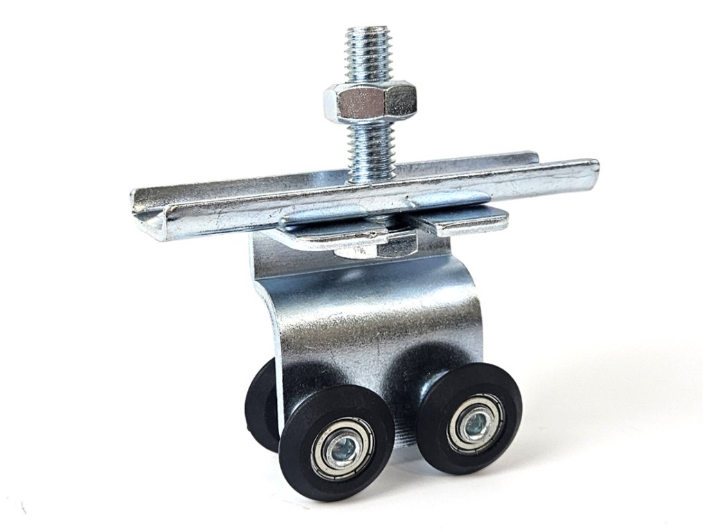 Ložiskový závěsný vozík se 4 ocelovými kolečky s ložisky určený k montáži na horní díl posuvných závěsných vrat. Vozík je vhodný pro pojezd v profilu kolejnice 339P. Závěsný vozík je vyroben z kvalitního kovu s povrchovou úpravou. 4 ocelová kolečka s ložisky zaručují lehký chod otevírání vrat do hmotnosti 80kg.