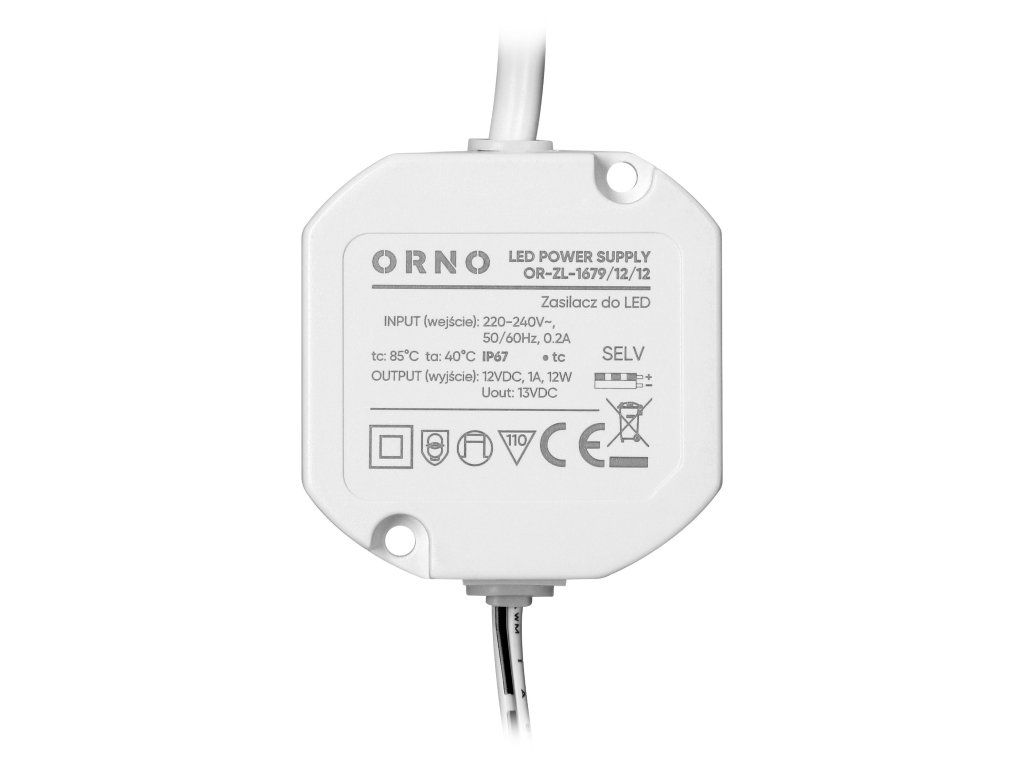 Jednotka pracuje v rozsahu vstupního napětí 220-240 V a poskytuje maximální výkon 12 W. Její vzduchotěsné, vodotěsné plastové pouzdro splňuje stupeň krytí IP67. Vysoká těsnost pouzdra účinně chrání napájecí zdroj před vodou, prachem a dalšími vnějšími vlivy, což zajišťuje dlouhodobý a spolehlivý provoz i v náročném prostředí, zejména venku.